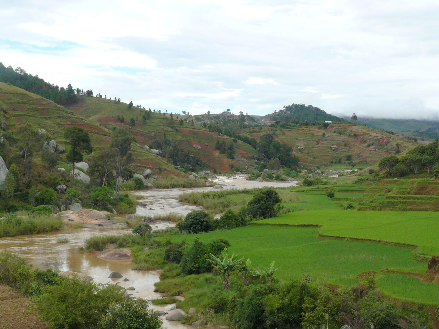 voller Reisfelder. Der Stamm der Betsileo (=unbesiegbar), der in und um Ambositra lebt,
