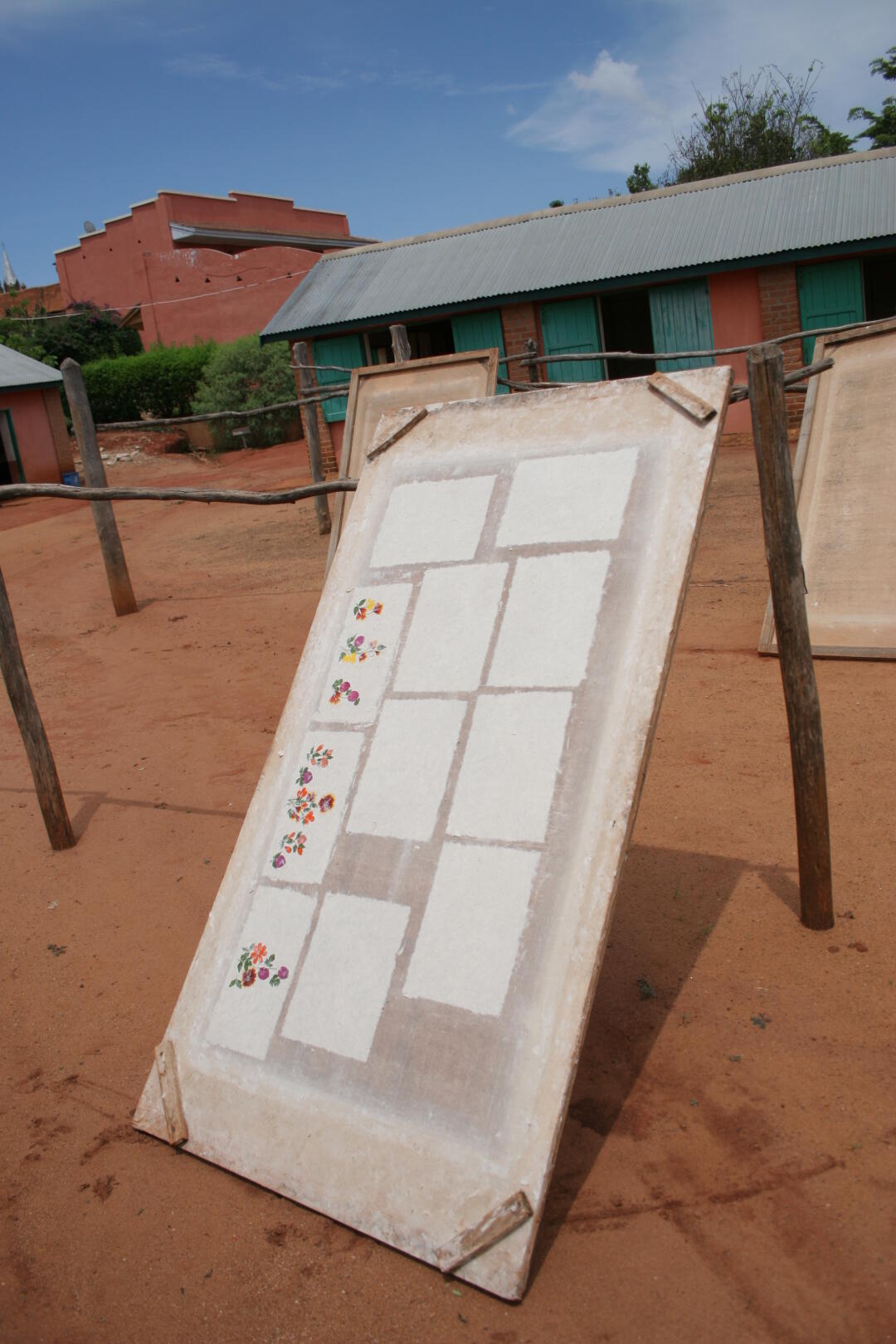 Baumwollsiebe mit dem Papier zum Trocknen in die Sonne gestellt.
