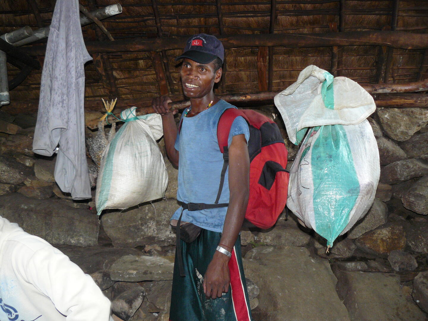 Porter überholen uns, allerdings nehmen sie im Tal eine Abkürzung, bei
