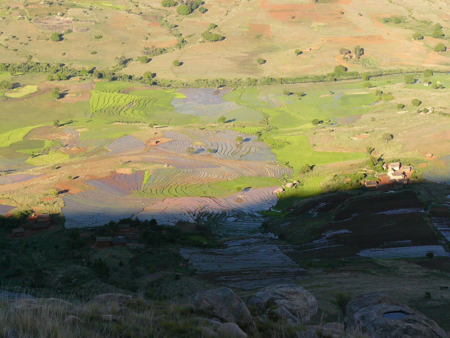 Reisfeldern und Zebu-Weideflächen geht es weiter. während wir am