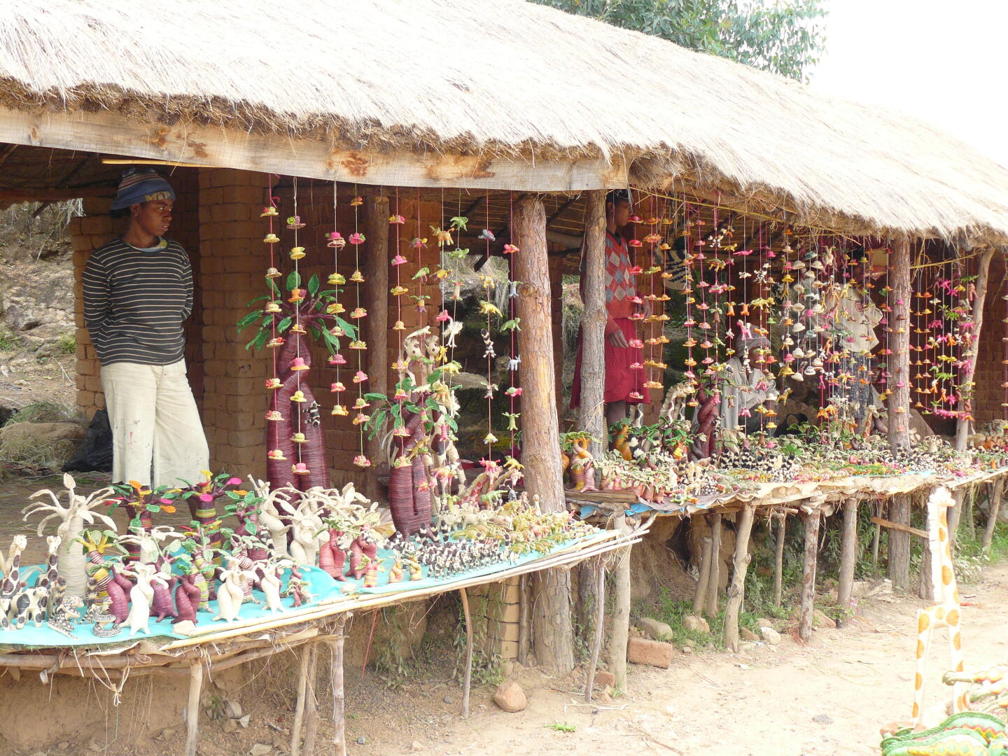 ein paar Ständen, an denen Gegenstände aus Raphia-Palmblättern