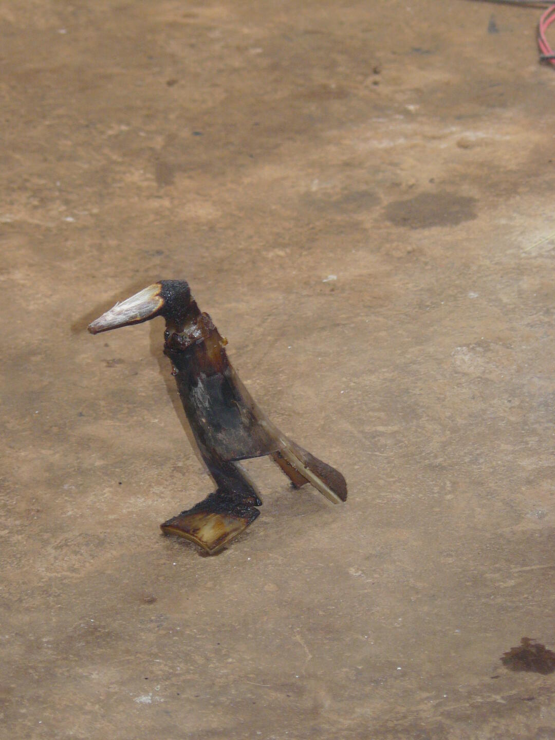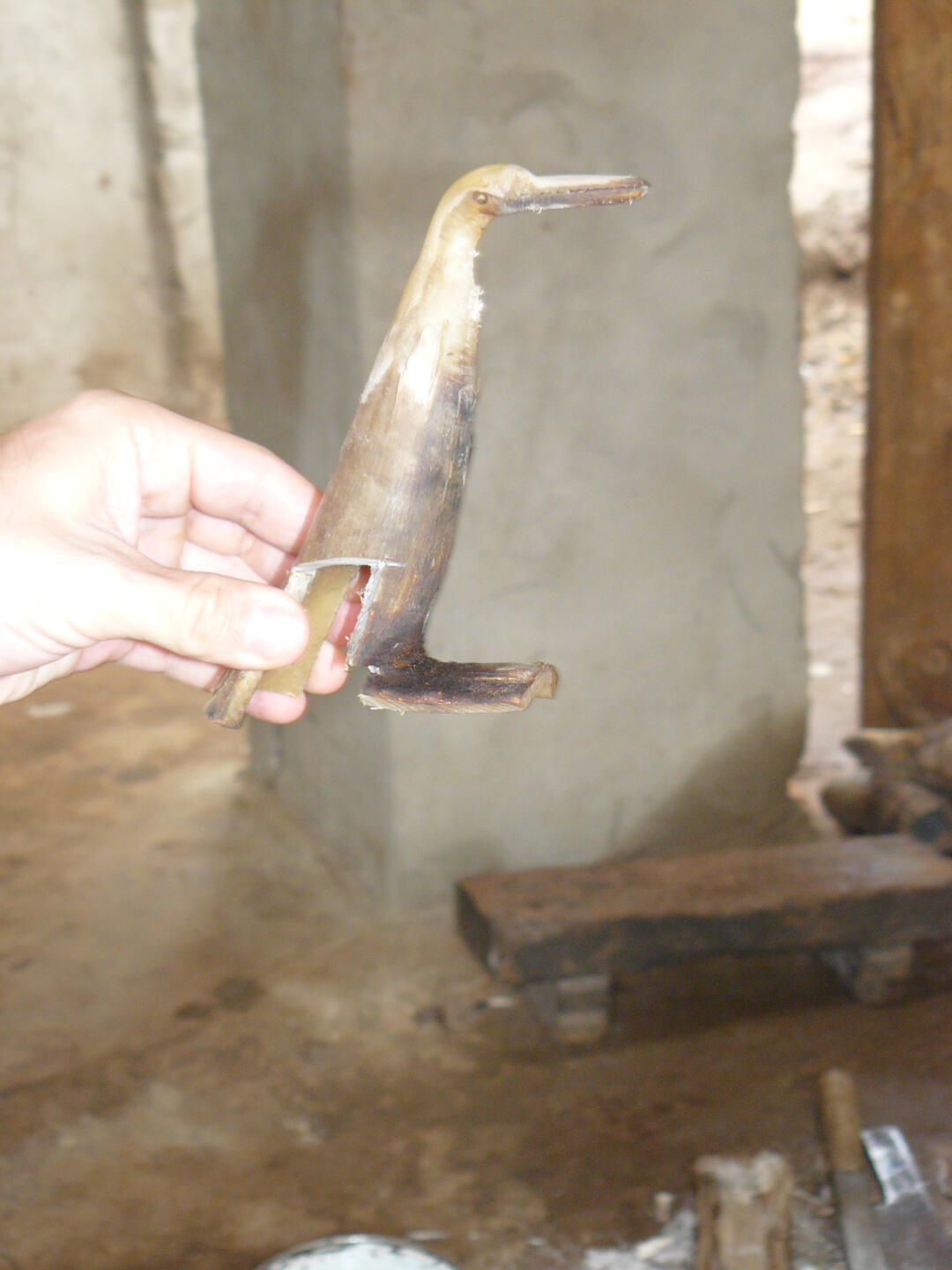 mit einer Säge wird der Schnabel aufgesägt. Die Oberfläche wird