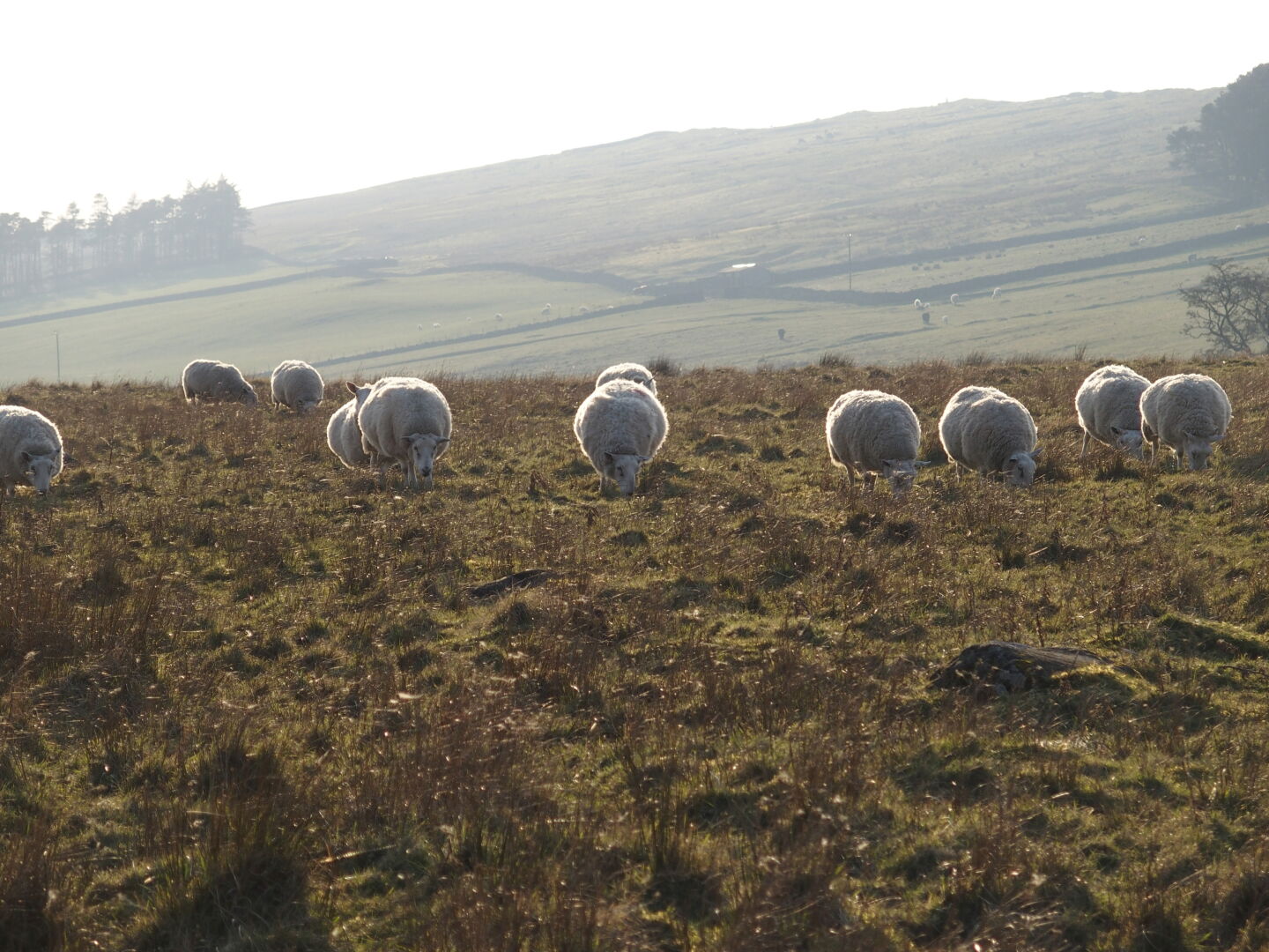 Looking south, I was very surprised to see the snow-covered peaks of the Lake District in the distance! The GPS told me Helvellyn was more than 50 km away, and Scafell Pike nearly 70 km, and yet we could clearly see their silhouettes. Ah, nostalgia! How many hikes have I enjoyed in those hills, over those fells, a few years ago.