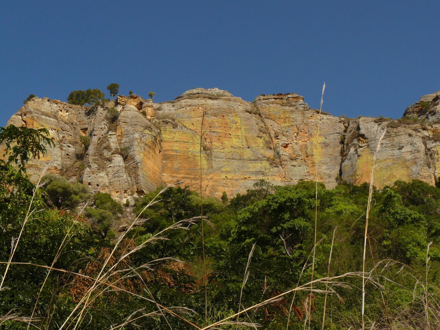 Das Isalo-Gebirge besteht aus hellem Sandstein, der durch Bewuchs mit
