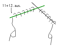 - Knit another round, joining the last resp. first 2 stitches from the needles with the many stitches (see arrows in Figure 11).