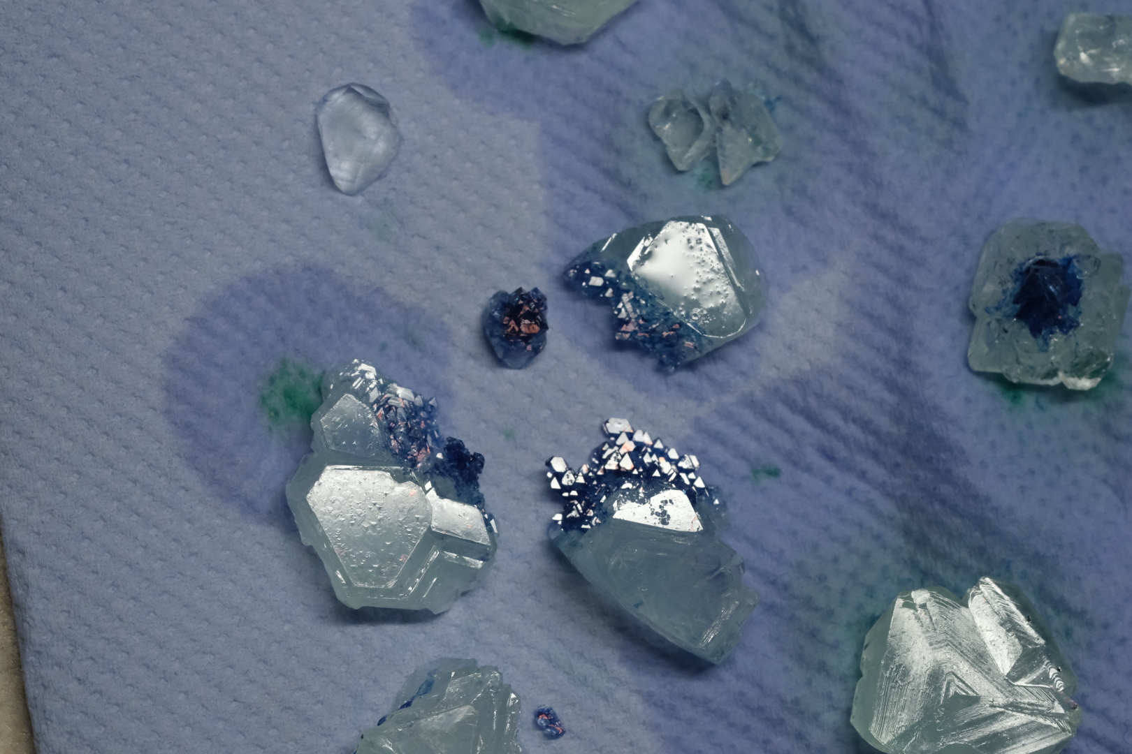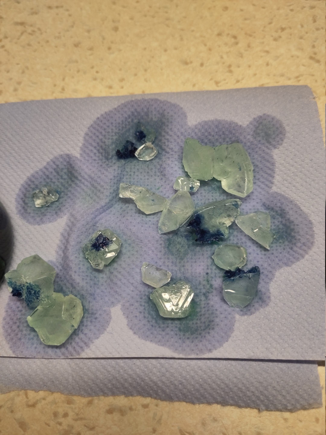 Und juhu, hier das Ergebnis! Nur an wenigen Stellen wurde die Farbe tatsächlich in die Kristalle eingebaut.