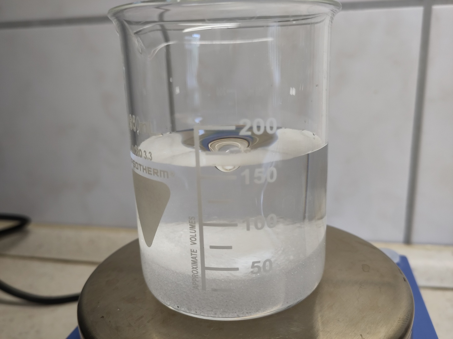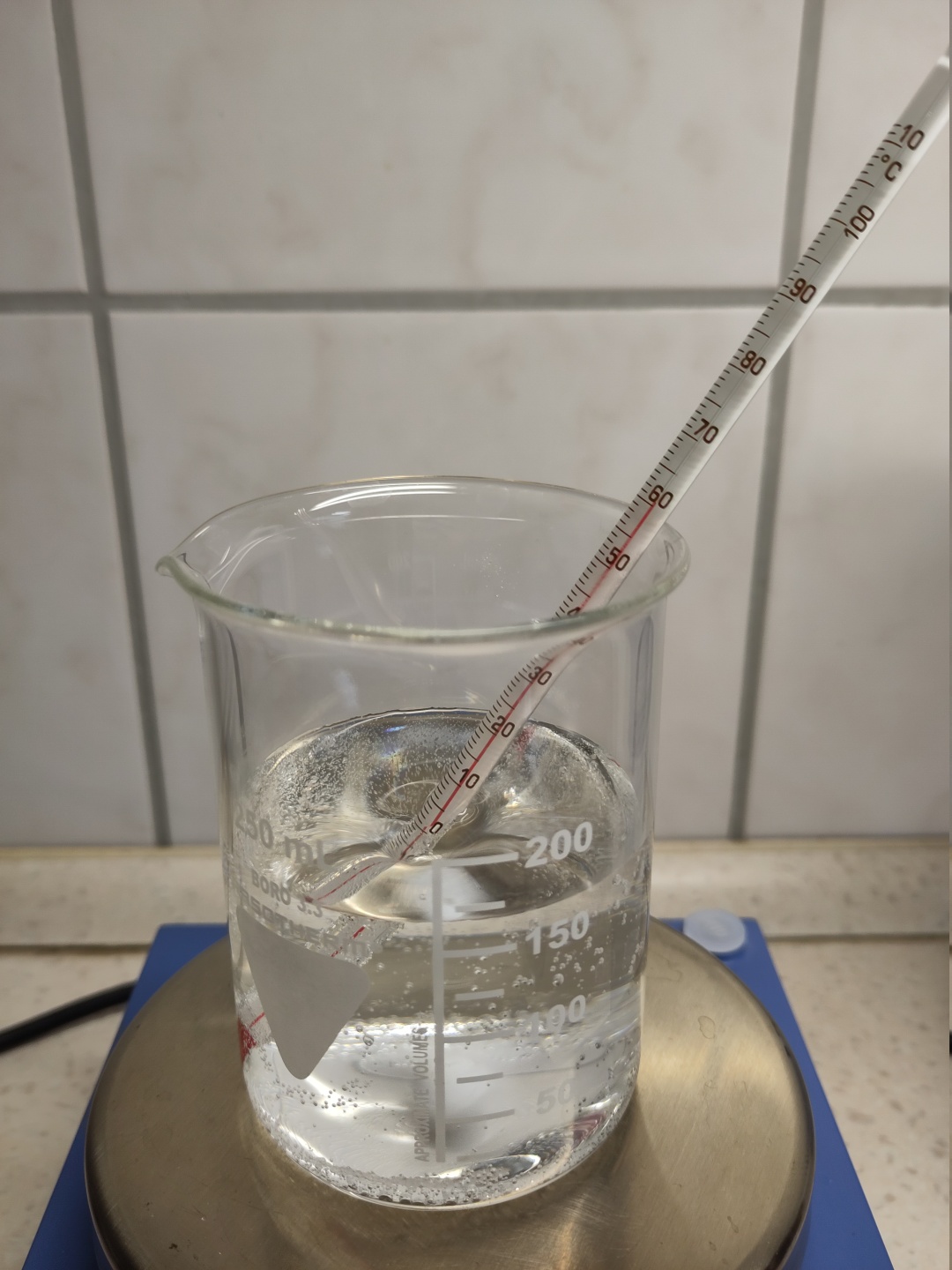 Also dann, erhitzen auf mindestens 50°C. Gut, dass ich einen Magnetrührer mit integrierter Heizplatte habe!