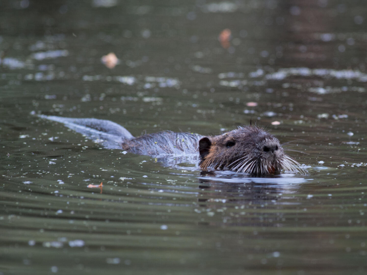 Langsam wird es dunkler. Ich packe meine Sachen zusammen und ziehe mich vorsichtig zurück. Die Biberratte schwimmt noch immer auf dem Teich herum und nimmt keine Notiz von mir. Ich wüsnche weiterhin guten Appetit und gute Nacht!